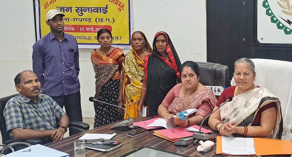 रायगढ़ : छत्तीसगढ़ राज्य महिला आयोग की अध्यक्ष डॉ.किरणमयी नायक एवं सदस्य श्रीमती अर्चना उपाध्याय ने आज कलेक्टोरेट के सृजन सभाकक्ष में महिला उत्पीडऩ से संबंधित प्रस्तुत प्रकरण पर जनसुनवाई की। छत्तीसगढ़ महिला आयोग की अध्यक्ष डॉ.किरणमयी नायक की अध्यक्षता में आज प्रदेश स्तर की 249 वीं एवं रायगढ़ जिले में छठवीं सुनवाई हुई। इस अवसर पर संयुक्त कलेक्टर श्रीमती ऋषा ठाकुर, जिला कार्यक्रम अधिकारी श्री एल.आर.कच्छप, डीएसपी श्रीमती निकिता तिवारी, महिला संरक्षण अधिकारी नवाबिहान महिला बाल विकास चैताली राय विश्वास, केन्द्र प्रशासक सखी सेंटर रायगढ़ श्रीमती विनिता गुप्ता सहित विभागीय अधिकारी-कर्मचारी उपस्थित रहे।