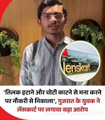 गांधीनगर : आईवियर कंपनी लेंसकार्ट एक नए विवाद में घिर गई है। अब खुद को कंपनी का एक पूर्व कर्मचारी बताने वाले युवक ने दावा किया है कि धार्मिक प्रतीकों को हटाने से इनकार करने पर उसे नौकरी से निकाल दिया गया था। खुद को कंपनी का पूर्व कर्मचारी बताने वाले जील सोगसिया ने एक वीडियो जारी कर दावा किया कि उन्हें कंपनी ने अपनी शिखा काटने, ओम का टूट मिटाने और तिलक हटाने के लिए कहा था। जब उन्होंने ऐसा करने से मना किय, तो उन्हें नौकरी से निकाल दिया गया। यह आरोप ऐसे समय में सामने आया है जब कंपनी में ड्रेस कोड लेकर पहले से ही विवाद चल रहा है।