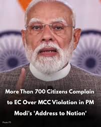 सात सौ से अधिक नागरिकों ने प्रधानमन्त्री के राष्ट्र के नाम संबोधन को आचार संहिता का बताया उल्लंघन , चुनाव आयोग से की शिकायत