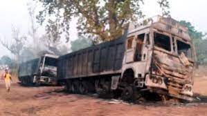 नक्सलियों ने 4 ट्रकों को किया आग के हवाले